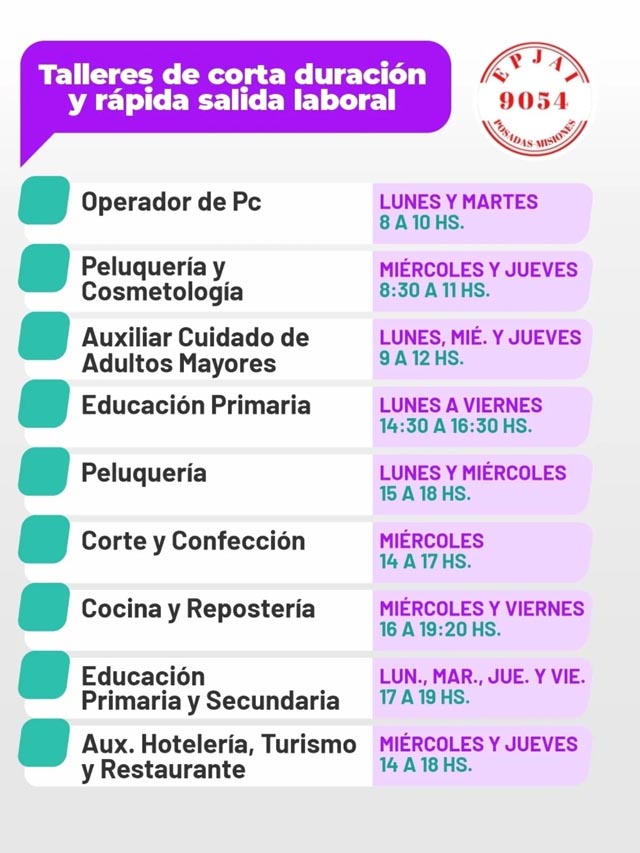 La propuesta incluye una variedad de capacitaciones orientadas a la formación en oficios, con el objetivo de brindar herramientas prácticas que favorezcan la inserción laboral y el desarrollo de emprendimientos. Los interesados pueden acercarse directamente en el horario en que se dictan las clases para iniciar el proceso de inscripción.
