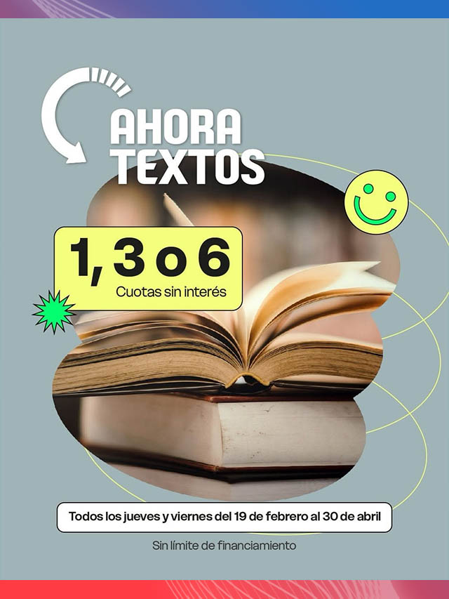 En tanto, Ahora Textos funcionará también los jueves y viernes, en este caso hasta el 30 de abril, con opciones de financiación en 1, 3 o 6 cuotas sin interés para la compra de libros y manuales escolares.