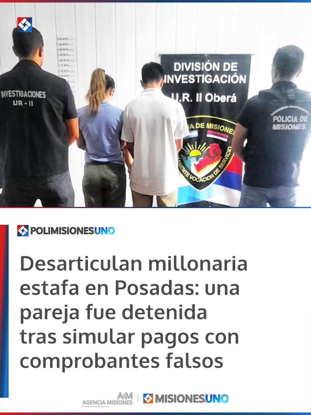 AGENCIA MISIONES.UNO | Una pareja fue detenida acusada de estafar [...]