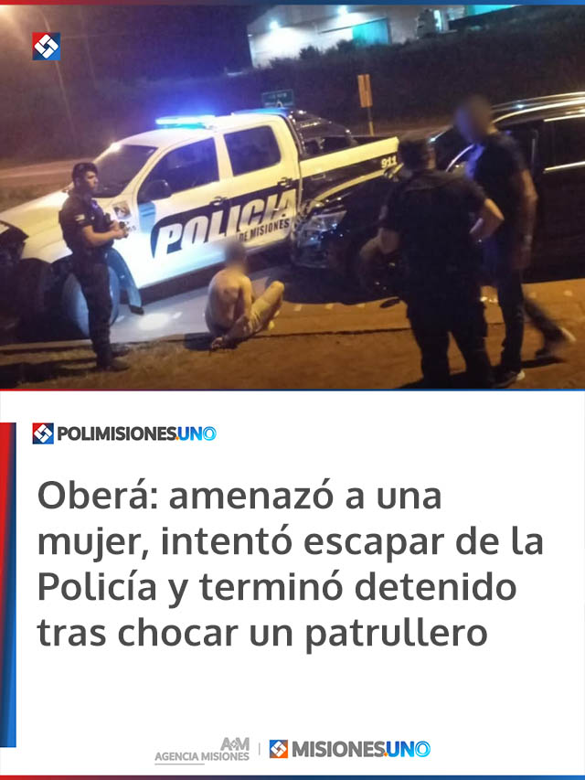 Oberá: amenazó a una mujer, intentó escapar de la Policía y terminó detenido tras chocar un patrullero