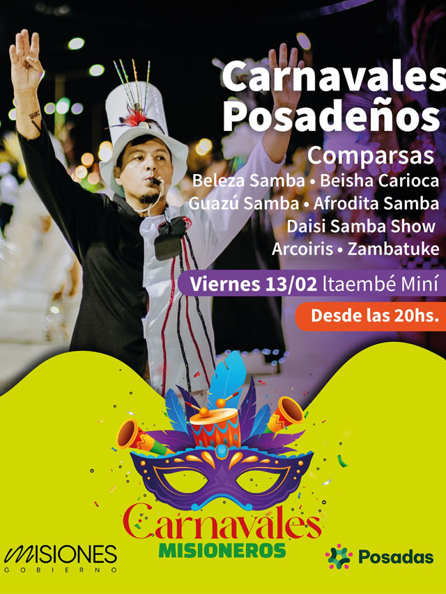 MISIONES.UNO – En el barrio Itaembé Miní se desarrollará una nueva jornada de carnaval este viernes, con propuestas de música, baile y encuentro comunitario.