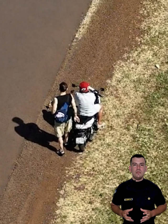 En uno de los recientes procedimientos, el monitoreo aéreo detectó una motocicleta que circulaba con dos ocupantes, uno de ellos sin casco reglamentario. Al advertir la presencia del control, el conductor detuvo la marcha sobre la arteria e intentó evadir la fiscalización haciendo descender al acompañante.