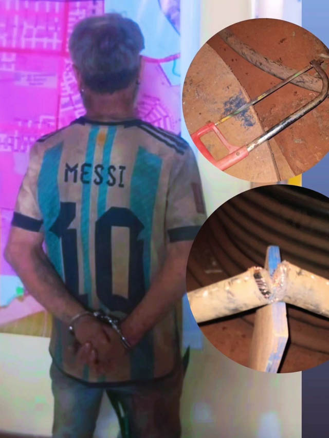 Al advertir la presencia policial, el sospechoso intentó esconderse dentro del galpón, pero fue rápidamente rodeado por los efectivos y reducido en el lugar.