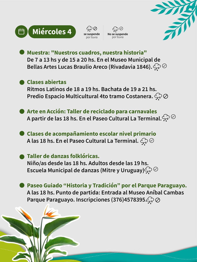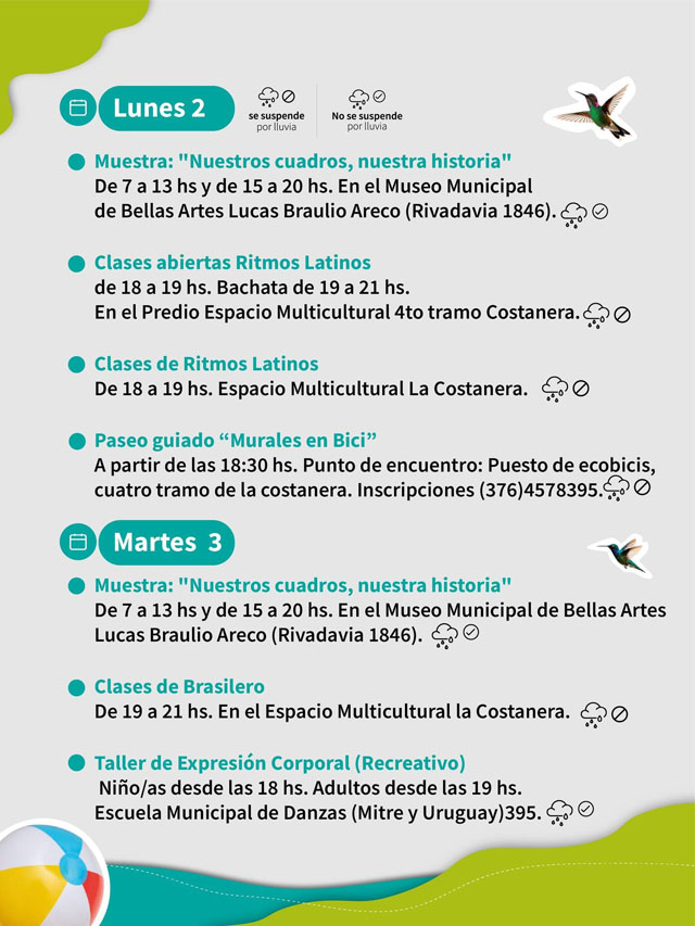 MISIONES.UNO – En Posadas, la semana llega con una variada propuesta de actividades recreativas, culturales y deportivas para disfrutar del verano en distintos espacios de la ciudad.
